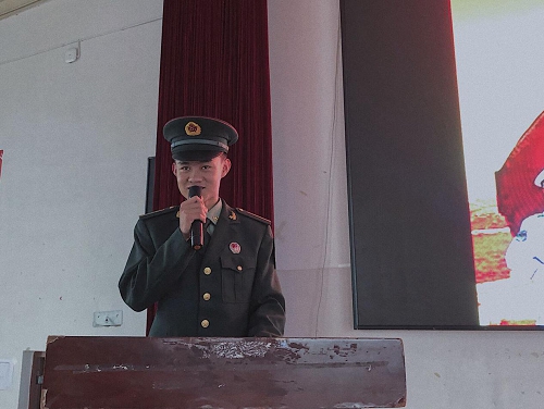 之后,新生代表黄庆福同学发言,他承诺,全体新生在军训中秉承“厚德、精技、乐学、善教”的学院精神,以实际行动展现当代大学生青春风采。